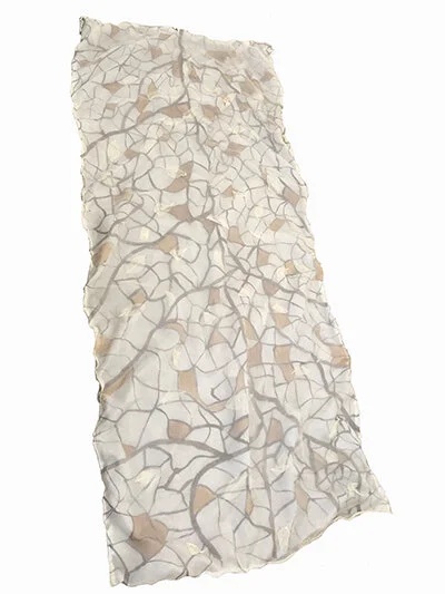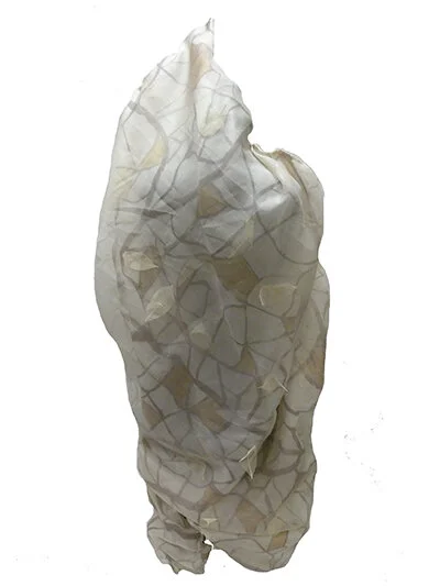 The inspiration for my design is leaf vines. They are visible vines in a beautiful net structure and connected on the leaf. They provide nutrition to ensure the smooth progress of leaf physiological functions. Another thing inspired me is an art project that I did in China’s primary school, which is the skeleton leaf bookmark. We used chemicals to boil leaves removed the mesophyll from vines, dye them and turn them into beautiful bookmarks. The final project is a shell and has a soft beige color on it. The whole design is the combination of this beautiful and detailed leaf vines structure with the sheerness of skeleton leaf to create wearable art. The meaning of this design is presenting people with the essence of leaves and how strong they are. People might think leaves are fragile, however, after boiling with chemicals and removing the mesophyll, all the vines are still staying together and keeping the shape of leaves. It is hard to notice all the leaf vines when leaves have not been made or turn into skeleton leaves. However, they are the They silently transport water and nutrients to all parts of the leaf and support the leaf, increasing the area of photosynthesis, keeping leaves health and green. During the researching process, I was also inspired by leaf bowls made from real leaf skeletons by a Japanese American artist called Kay Sekimachi. She discovered that the unique veins and natural extension of leaves can reveal an elegant quality. Her skeleton leaf bowls shocked the art world and were collected by major museums in the United States. Looking through these bowls, they are thin and transparent, with a sense of crystal clear, the whole bowl looks both firm and fragile at the same time. This characteristic attracts me, and I want to present people with a combination of fragility and vitality from these skeleton leaves.
